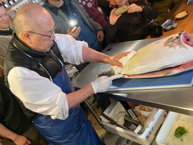 このような魚の「食」にまつわるお話を聞きながら、鰤宝が豪快に捌かれていく様子は圧巻でした。