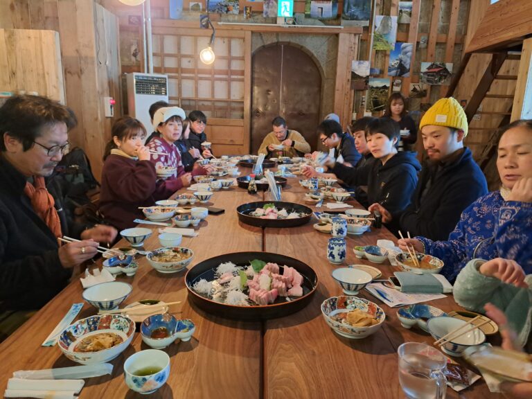 その品質の高さから、ほとんどの鰤宝は本州に高級品として出荷されるため、地元でも入手困難なお魚であると聞くと、参加者の皆さんは驚いた表情で、後半の鰤宝のお食事会をより一層楽しみにしておられました。